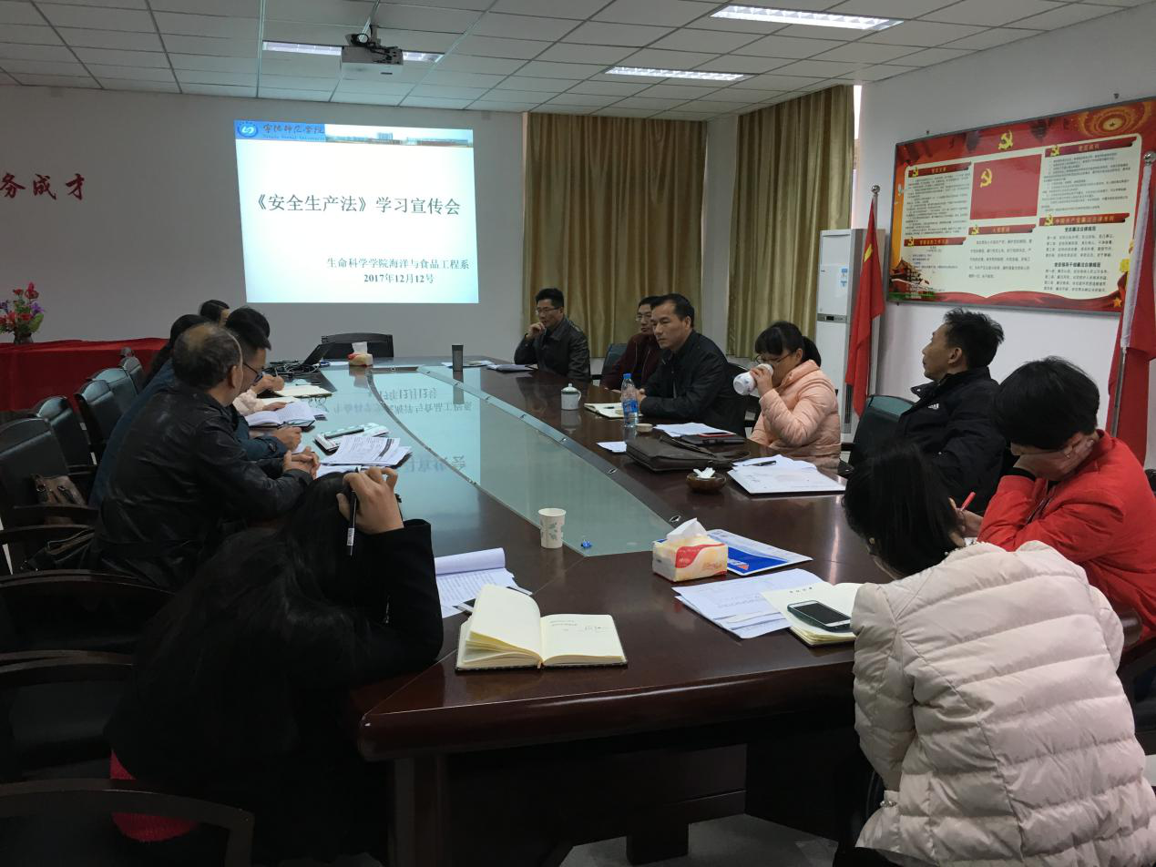 全院各任课教师以及实验员采取集中学习、分组学习等方式认真学习贯彻党的十九大精神、习近平总书记系列重要讲话和关于安全生产的重要批示指示,学习《安全生产法》等与安全生产工作相关的法律法规,做到先学一步、学懂弄通、指导实践、灵活运用。