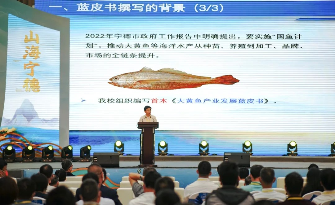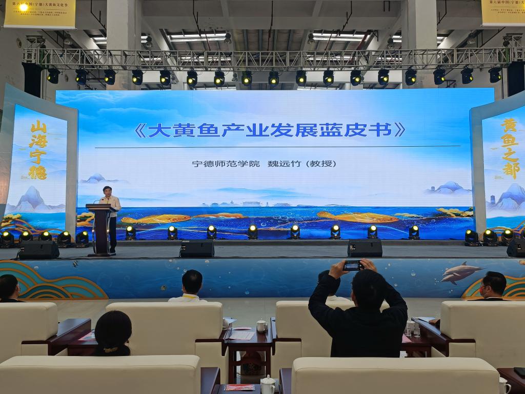 11月19日-20日,为助力“国鱼计划”实施,提升大黄鱼产业全链条深度发展,宁德市委市政府隆重举办第六届中国(宁德)大黄鱼文化节。福建省政府副省长林文斌、自然资源部东海分局副局长袁绍宏、中国渔业协会会长赵兴武、中国水产流通与加工协会会长崔和以及省政府办公厅、省海洋渔业局、省商务厅、市委市政府及各组成部门领导、市人大、市政协、各沿海县市主要领导以及来自国内知名的行业专家学者、行业协会、客商及重点涉渔企业代表等300多人出席本次活动,Beat365官网独立编撰完成的全国首部《大黄鱼产业发展蓝皮书》亮相本次盛会。校长魏远竹教授应邀参加了本次大黄鱼文化节开幕式。