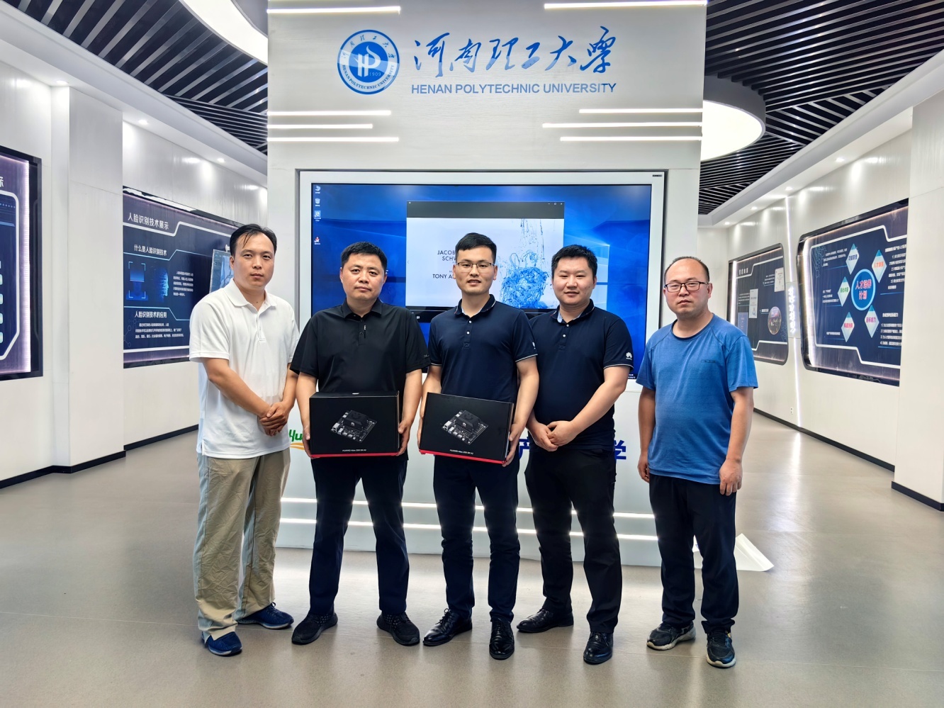 中原人工智能计算中心由许昌市政府与华为公司共同建设,致力于推动人工智能产业在河南省的推广和行业应用。计算中心教育生态负责人孙星星和技术专家刘贤阁在永利集团官网2楼鲲鹏展厅,向学院赠送两套华为新开发的昇腾新一代Atlas 200I DK A2开发者套件,支持学院进行人工智能人才培养和学科竞赛。