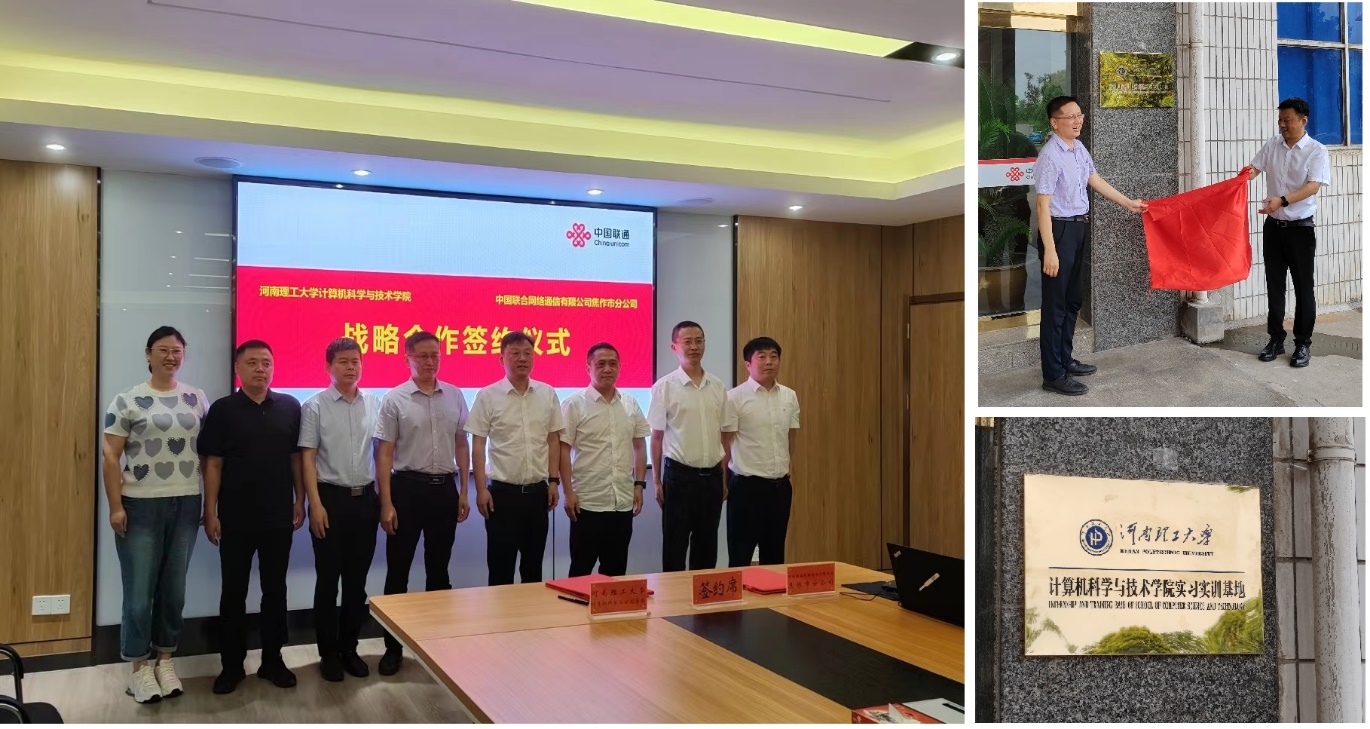 为促进校企产学研合作,提高我校计算机类专业人才培养质量,7月11日上午,永利集团官网与焦作市联通公司校企合作签约仪式在联通公司会议室举行。焦作市联通公司副总经理程小海及相关部门负责人,永利集团官网院长孙君顶、班子部分成员和相关专业负责人参加了校企合作签约会议以及揭牌仪式。