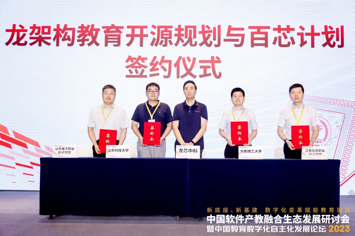为进一步推进产教融合、科教融合,提高我校计算机类专业人才培养质量,永利集团官网近期参加了由工业和信息化部教育与考试中心等单位指导,龙芯中科技术股份有限公司承办的“2023中国软件产教融合生态发展研讨会暨中国教育数字化自主化发展论坛”,并签约龙架构教育开源规划与百芯计划。