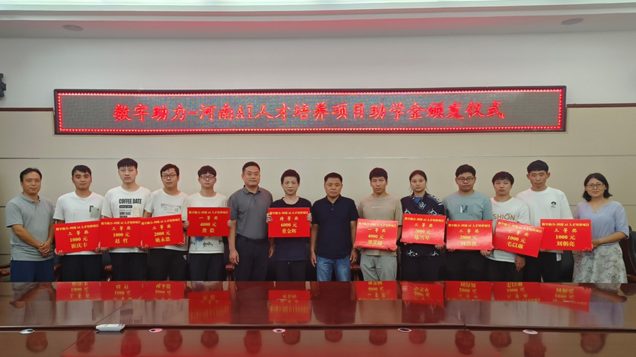 该助学金的发放属于数字助力-河南AI人才培养项目建设的一部分,项目由中国互联网发展基金会发起、百度基金会出资,旨在支持河南灾后经济社会建设及产业智能升级。项目具体实施过程中,由中华思源工程基金会捐赠资金到3044永利集团教育发展基金会,帮助我校进行AI人才培养。在项目的支持下,我校建立了来自多个学院300多学生的百度人工智能菁英班,由永利集团官网负责菁英班的组织和管理工作。百度为菁英班提供课程教学等资源,并已经捐赠了300多套、900多本的人工智能教材。