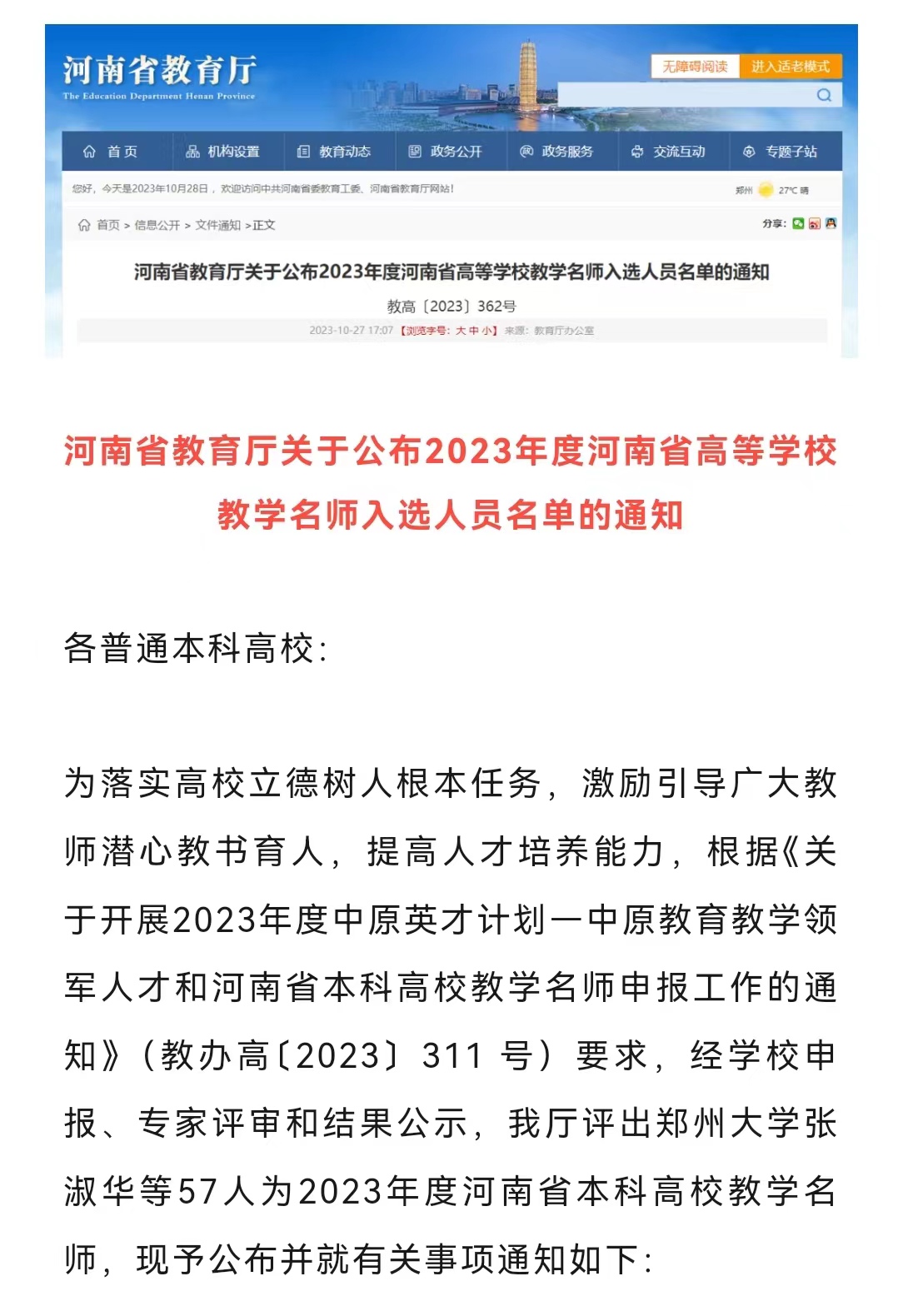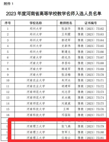 根据《关于开展2023年度中原英才计划—中原教育教学领军人才和河南省本科高校教学名师申报工作的通知》(教办高〔2023〕311 号)要求,经学校申报、专家评审和结果公示,永利集团官网教师贺军义入选河南省高校教学名师。