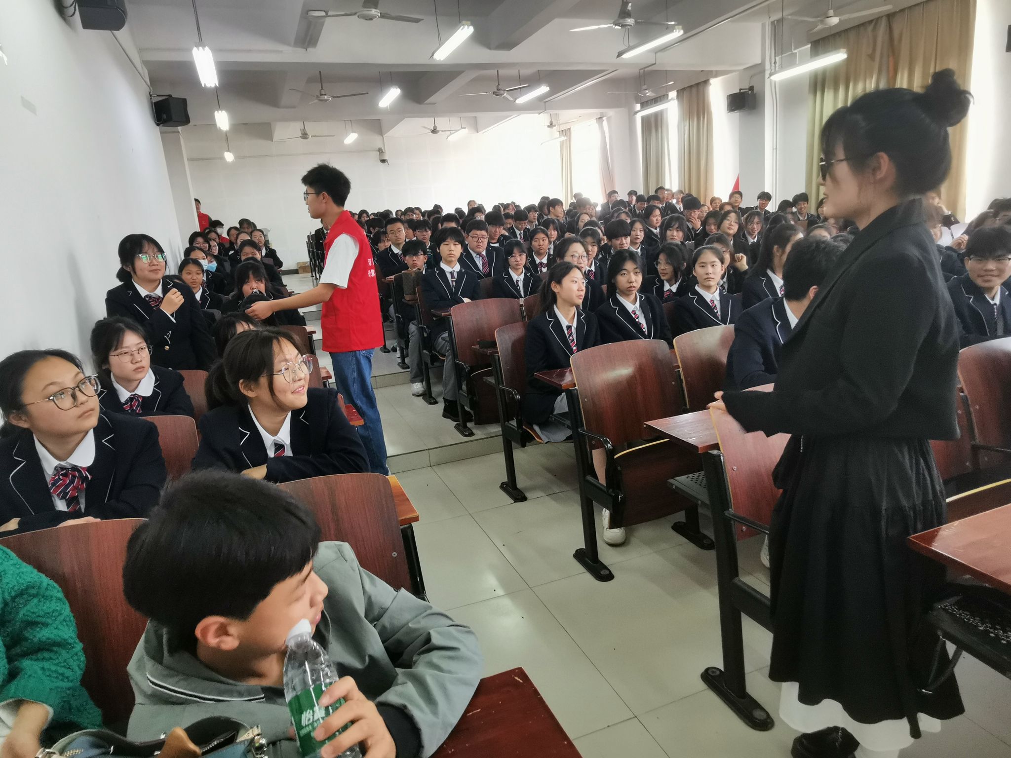 活动伊始,计算机专业党支部书记对来访的焦作十二中师生表示热烈欢迎,详细介绍了“智汇忘年”志愿服务项目的起源、内涵和主要服务内容,阐述了项目自启动以来,致力于人工智能科普和信息技术在不同年龄人群中的应用,为消除数字鸿沟和年龄代沟,达到相互学习共同提高目的开展的一系列活动。随后,计算机系陈艳丽老师为研学高中生们带来了一场精彩的《人工智能大模型》科普讲座,深入浅出地介绍了人工智能的发展史,通过生动的演示,展现了大模型的强大功能,鼓励大家要勇敢面对人工智能的挑战,不断学习新知识,提升自己的能力。同学们听得津津有味,纷纷表示大开眼界。学生代表计实验2301班王艺诺和计科合2001班包子旭分别分享了自己的高中成长和高考经历以及大学期间将个人兴趣转化为学术追求,致力芯片资助研发,开展科技创新,并保送至西北工业大学的经历。他们的故事让在场的师生深感敬佩,也为同学们树立了榜样。活动期间,在志愿者的带领下,焦作市十二中的同学们还参观了学校图书馆、校史馆和地质馆。悠久的办学历史、美丽的校园环境、智能化的图书馆设施以及地质馆里珍稀标本,都给同学们留下了深刻印象,餐厅的用餐体验更让同学们对大学生活充满了向往。