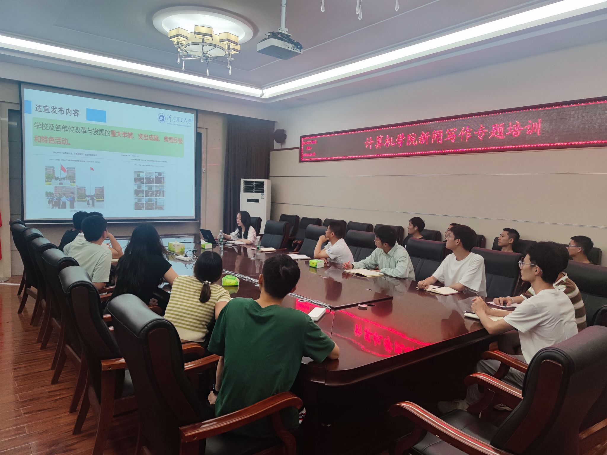 苏丽敏围绕认清宣传思想文化工作“形势” 、掌握校园新闻写作“技巧”、找准校园新闻传播“钥匙”三个方面,根据自己多年的新闻宣传工作经验,结合实际案例,深入浅出地介绍了校园新闻的主要类别、内容和写作技巧。她强调,新闻写作要确保新闻的真实性、时效性、准确性。通过多学、多思、多练,就能不断提高新闻写作水平。她鼓励参与培训的师生要将理论与实践结合起来,挖掘宣传点、把好时间点,以喜闻乐见的方式弘扬校园正能量,传播青年新声音。