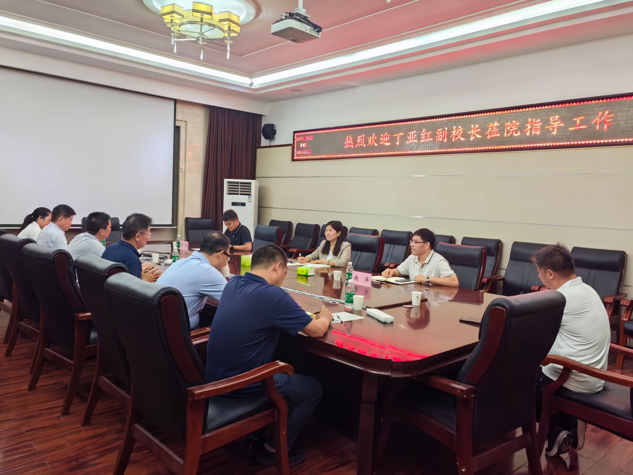 为进一步推动永利集团官网的全面发展,9月4日上午,副校长丁亚红一行三人到永利集团官网进行深入调研和指导工作。此次会议在该院217会议室举行,会议由学院党委书记许辉主持。该院领导班子成员参加会议。