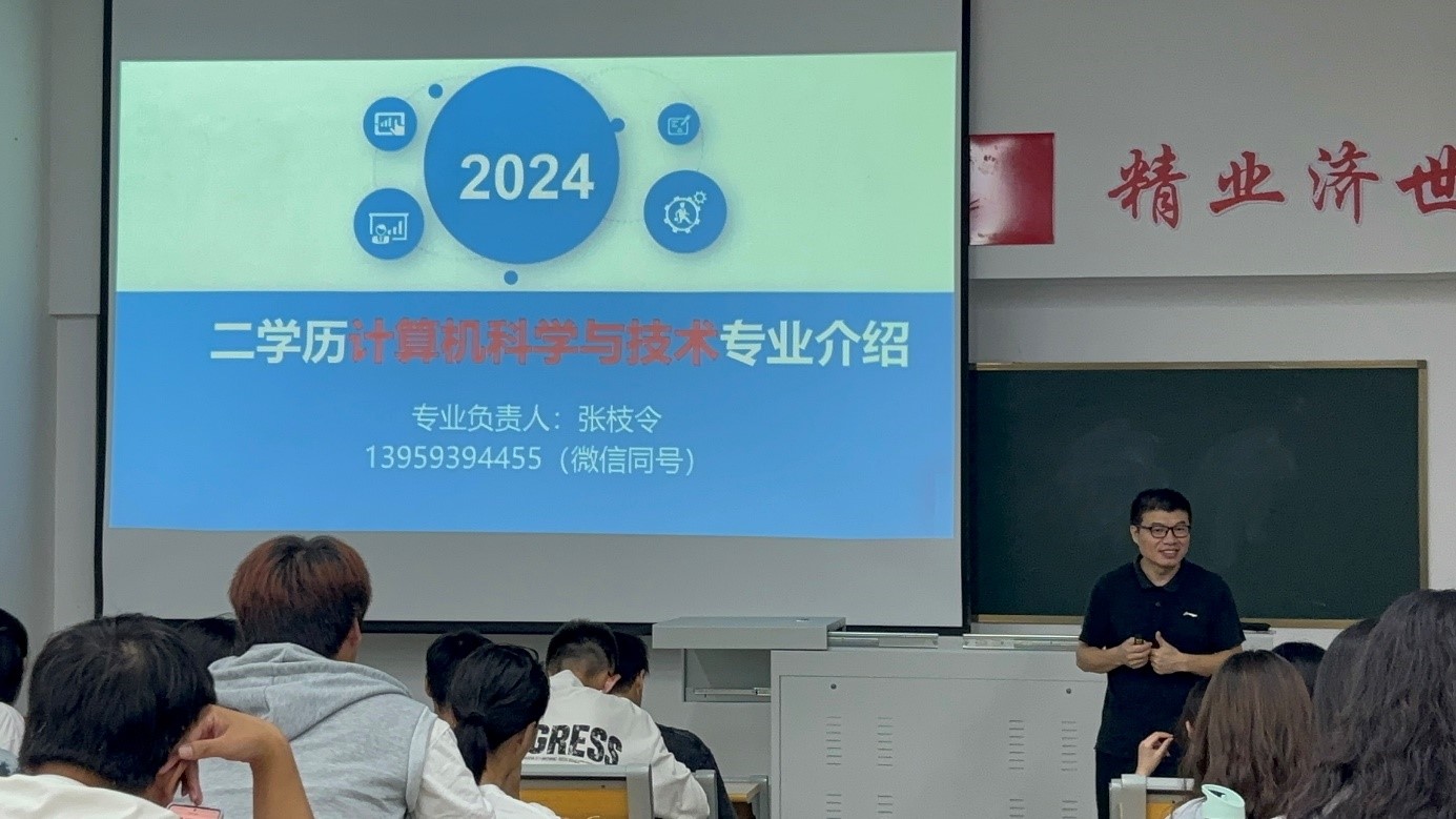 讲座开始,张枝令老师首先通过视频对计算机专业进行了简单的介绍,加强学生对计算机科学与技术专业的了解。接着,张枝令老师通过生动的案例分析和细致的讲解,介绍了关于二学历以及计算机科学与技术专业的有关知识。帮助学生深入了解计算机的专业优势、就业前景以及课程体系,让同学们更加深入的了解计算机专业,同时鼓励学生在挑选第二学历时更多的考虑计算机专业。张枝令老师耐心解答了许多同学们关于计算机专业的问题,帮助学生们了解二学历以及计算机专业,让学生们合理规划未来,树立目标。