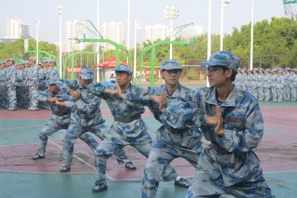 在军训末期,进行了总路程15公里的拉练。路途虽远,但同学们从未有放弃的念头,一路坚持到底。Beat365官网汇演的擒敌拳方阵队在田径场中央展示雄姿,动作行如流水,排面整齐,声声震撼人心。汇演后,学校统一开展了军事理论课,国防安全课等与国防教育相关的主题课程。