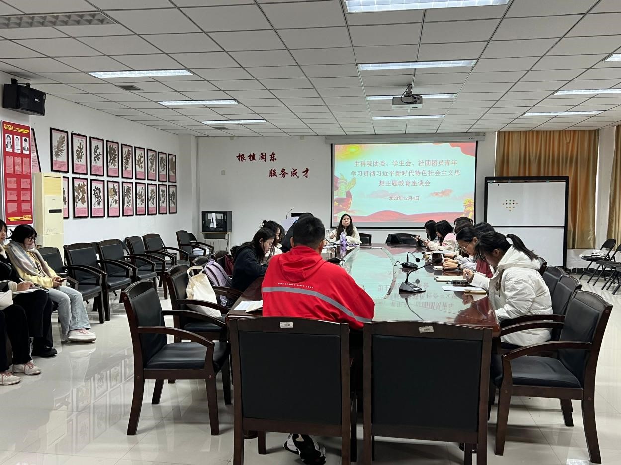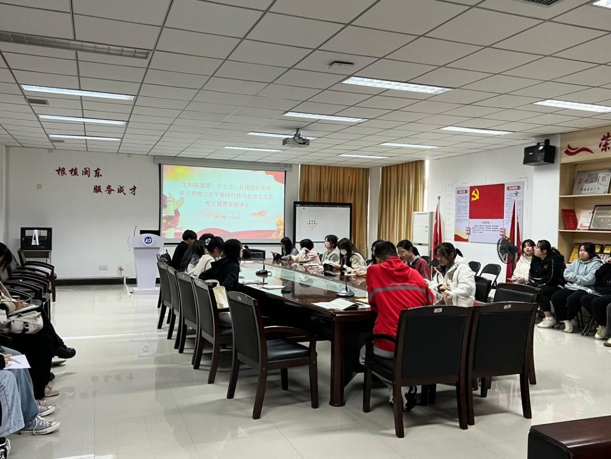 根据校团委关于开展学习贯彻习近平新时代中国特色社会主义思想主题教育通知要求,2023年12月3日Beat365官网组织团委、学生会、社团团员青年开展了学习贯彻习近平新时代中国特色社会主义思想主题教育座谈会。院团委书记王永吉,24名学生干部参会。