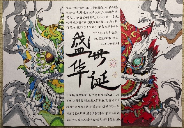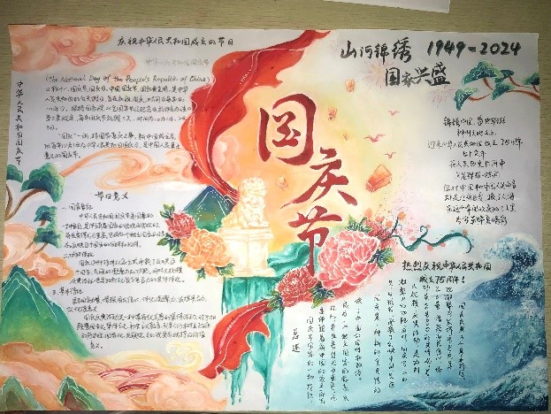 在本次活动中,同学们热情高涨,踊跃参与报名。同学们自主设计手抄报版面,精心准备绘画素材,从中国浩瀚的历史长河中选取国庆的元素。每一幅作品都蕴含着同学们对祖国的深厚情谊和对美好生活的向往,这些作品不仅展示了参赛同学的绘画才能,更是激发了海洋学子的爱国热情。