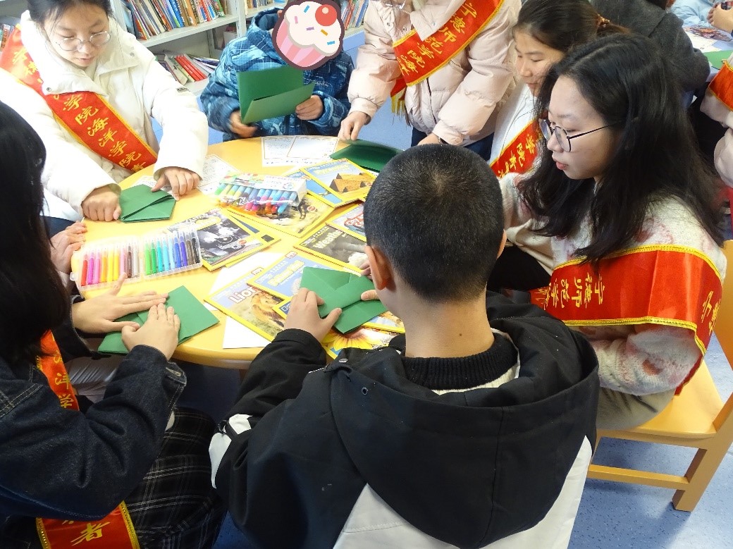 活动上,志愿者们把提前制作好的精美“学雷锋”记录卡作为礼物赠予福利院的孩子们。志愿服务部黄燕还为孩子们讲述了经典的雷锋故事——“雨中送大嫂”和“雷锋的‘钉子精神’”。孩子们深感震撼,纷纷表示要向雷锋同志看齐,勤奋学习将来帮助更多的人。与此同时,志愿者们手把手教孩子们叠雷锋帽,唱《学习雷锋好榜样》。一同在一楼广场开展户外活动,激励了孩子们树立积极向上的人生观和价值观,学习了雷锋无私奉献,乐于助人的精神。
