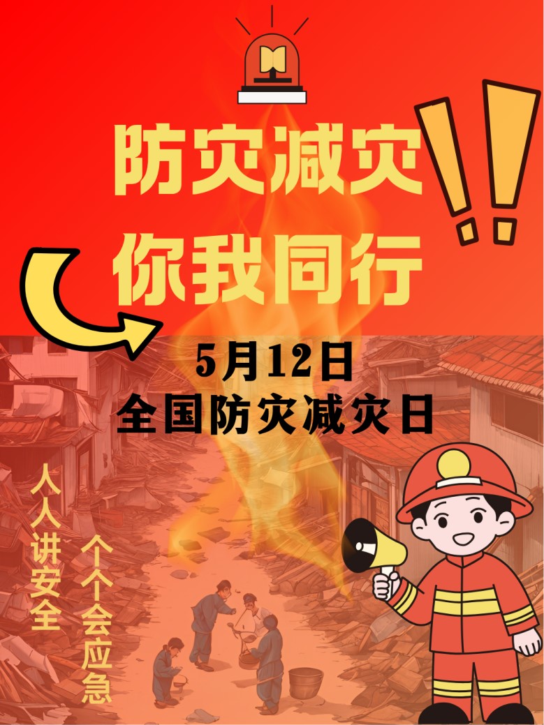 2025513日至515日Beat365官方网站开展“人人讲安全,个个会应急——排查身边灾害隐患”全国防灾减灾日海报设计比赛(二等奖作品:食品231)吕燕如《防灾减灾,你我同行》)