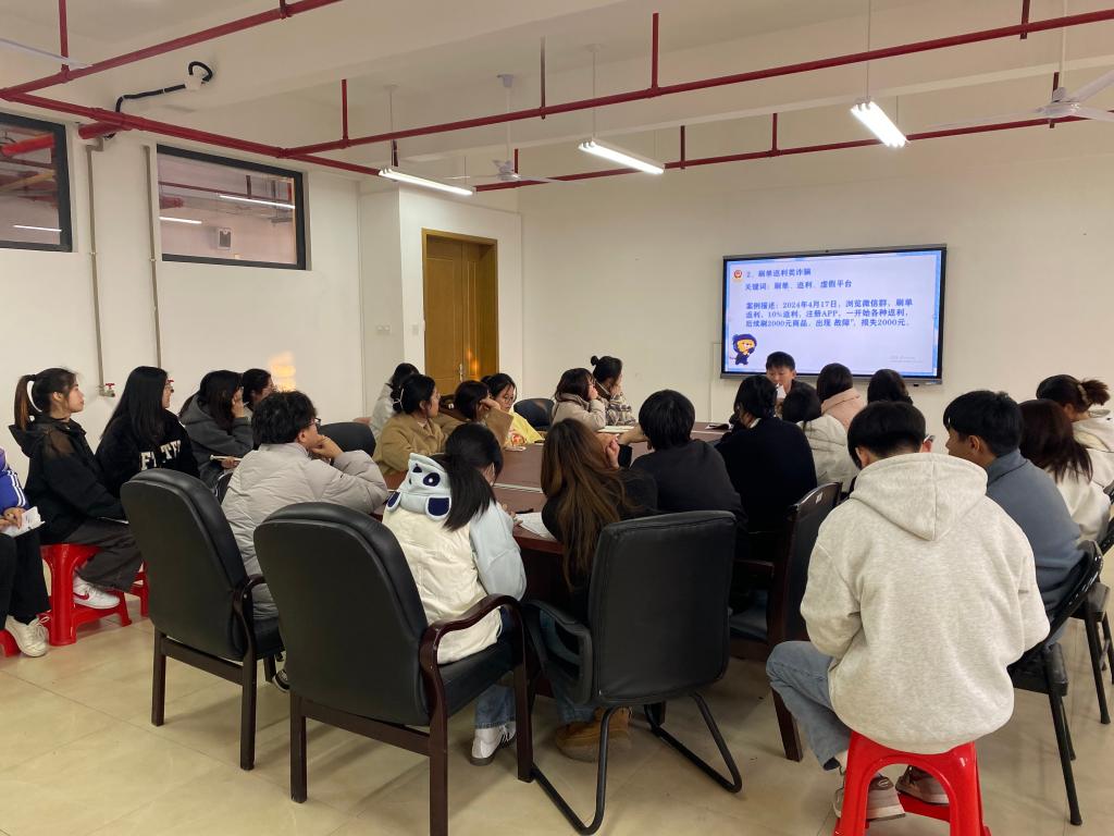 培训中,林维杰结合本校2024年真实电信诈骗案例,通过演示文稿讲解的形式,深入剖析了“刷单返利”“非平台交易”“冒充客服”等常见诈骗手法。他特别强调,当前诈骗手段不断升级翻新,大学生群体必须时刻保持高度警惕,切实做到“不轻信、不转账、不透露”。同时要求学生干部要率先垂范,不仅要做好自身防诈意识培养,更要带动身边同学养成良好的行为习惯,全面提升甄别诈骗行为的能力。