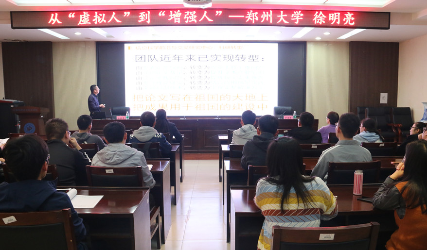 10月12日下午,郑州大学徐明亮教授莅临学院,在201会议室作了《从“虚拟人”到 “增强人”》的学术报告,学院部分教师和全体研究生聆听了报告,报告会由副院长于金霞主持。
