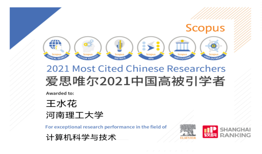 4月14日,爱思唯尔(Elsevier)正式发布了2021年中国高被引学者(Highly Cited Chinese Researchers)榜单,我院客座教授王水花博士以3044永利集团第一单位,入选计算机科学与技术学科2021“中国高被引学者”榜单。这是王水花博士第2次入选“中国高被引学者”。