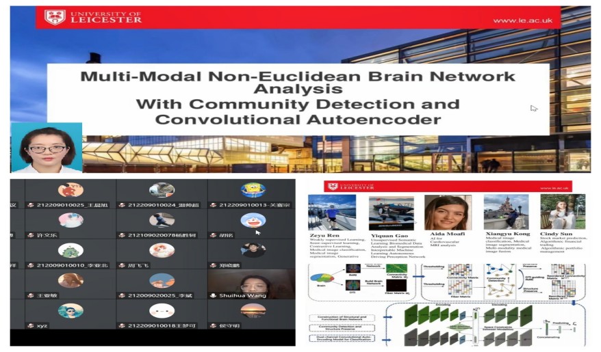 12月12日下午,英国莱斯特大学副教授王水花应邀参加我院“第三届研究生学术文化节”,为我院、软件学院师生线上作了题为《基于社区发现和卷积自编码器的多模态非欧氏脑网络分析》的学术报告,软件学院唐朝生副教授主持报告会,部分教师和研究生参加了报告会。