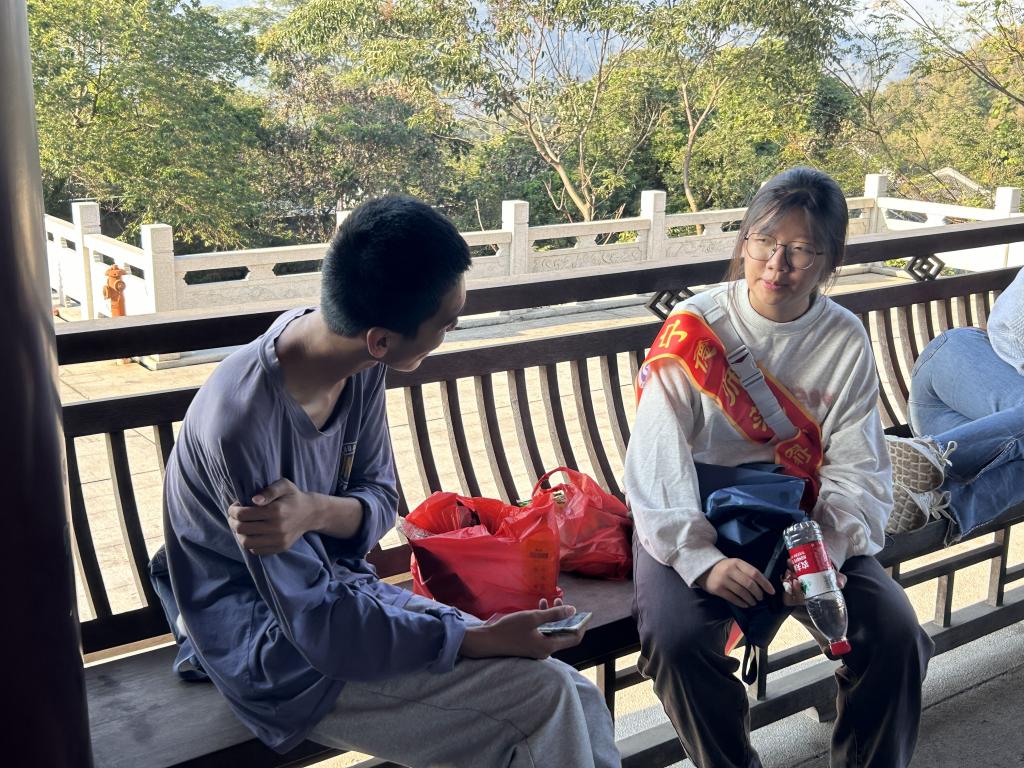 下午两点半,志愿者们和小朋友在山脚下集合并一对一配对后即刻出发。大家饱含热情,朝气蓬勃,沿途秋意宜人,丹桂飘香,志愿者和小朋友们携手同行,友好互动,一路欢声笑语,趣味盎然。同时,志愿者们还引导小朋友们互帮互助,团结友爱。