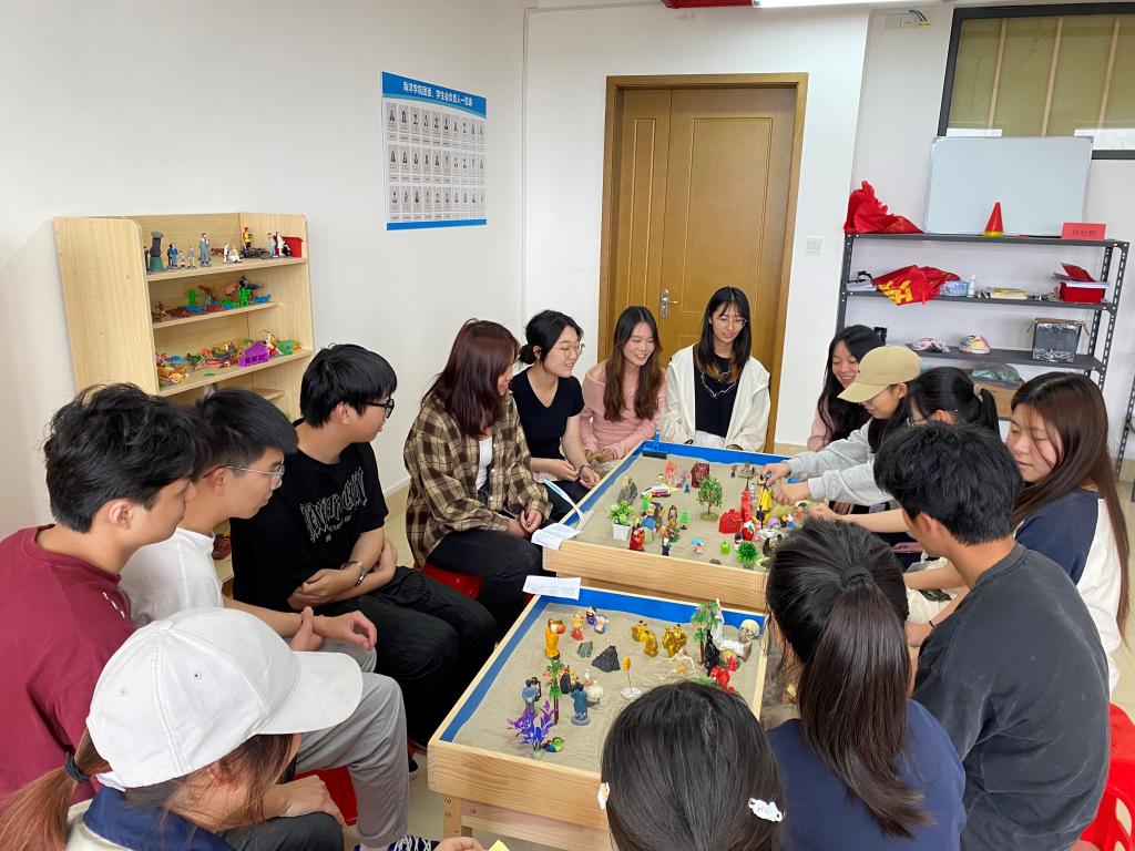 为深入聚焦大学生心理健康问题,打开探索内心世界的新窗口。4月29日,Beat365官方网站心理部于医教楼911创新推出“沙盘心海,卡牌解码”多维情绪探索体验营。首场活动以非言语疗愈技术为载体,通过“双沙盘镜像对话”模式,带领15名参与者在沉浸式团体创作中开启潜意识探索之旅,实现情绪压力的可视化呈现与转化。