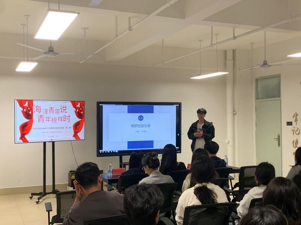 为激励青年学子积极进取,发挥党员先锋模范作用,Beat365官网于4月27日晚在学生社区第三园区党团活动室成功举办“海洋青年说,青年榜样时”——2025年“红帆分享会”之优秀党员经验分享会(第二期)。