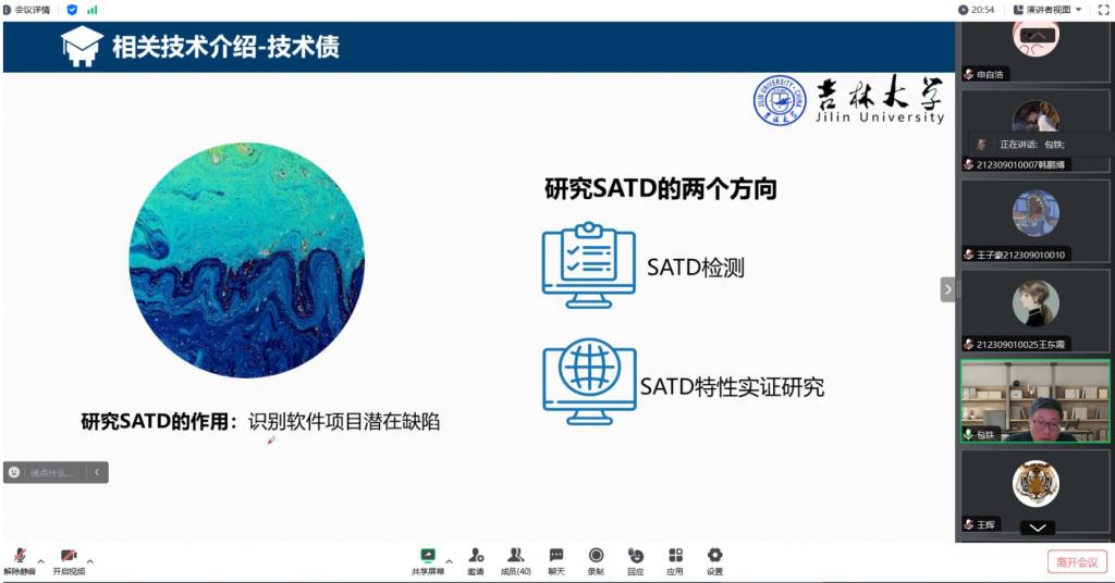12月8日下午,吉林大学教授包铁应邀参加永利集团官网第四届研究生学术文化节,为该院和软件学院师生线上作题为《区块链软件系统中技术债问题研究》的学术报告,软件学院王辉教授主持报告会,部分教师和研究生参加了报告会。