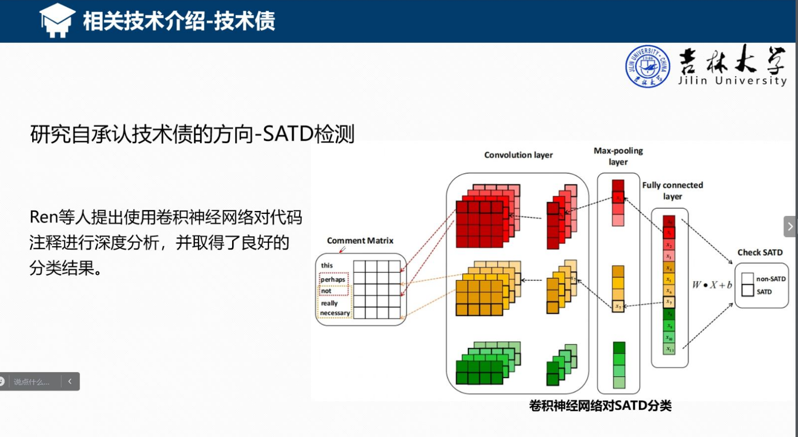 报告会上,包铁教授从区块链软件系统中技术债的概念及研究意义、目前的研究工作、团队研究工作、可解释性研究等方面进行了详细的讲解。首先包铁教授针对区块链软件系统应用的特点和面对的问题,介绍了技术债对于分析和改善软件质量的作用;其次重点分析了基于区块链软件系统中自承认技术(SATD)的类型、分布情况以及SATD的研究意义;然后通过构建涵盖多种编程语言的数据集,分析传统SATD判别方法的有效性,最后基于区块链软件系统的实现特点,给出有效判别软件代码中SATD的建议。