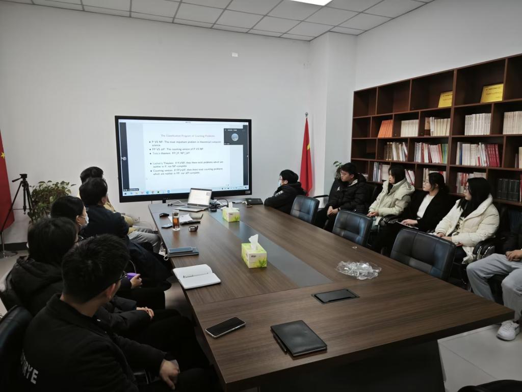 12月15日上午,东北师范大学付治国教授应邀参加永利集团官网第四届研究生学术文化节,为师生线上作题为《平面图上计数问题的计算复杂性分类》的学术报告,永利集团官网芦碧波主任主持报告会,部分教师和研究生参加了报告会。