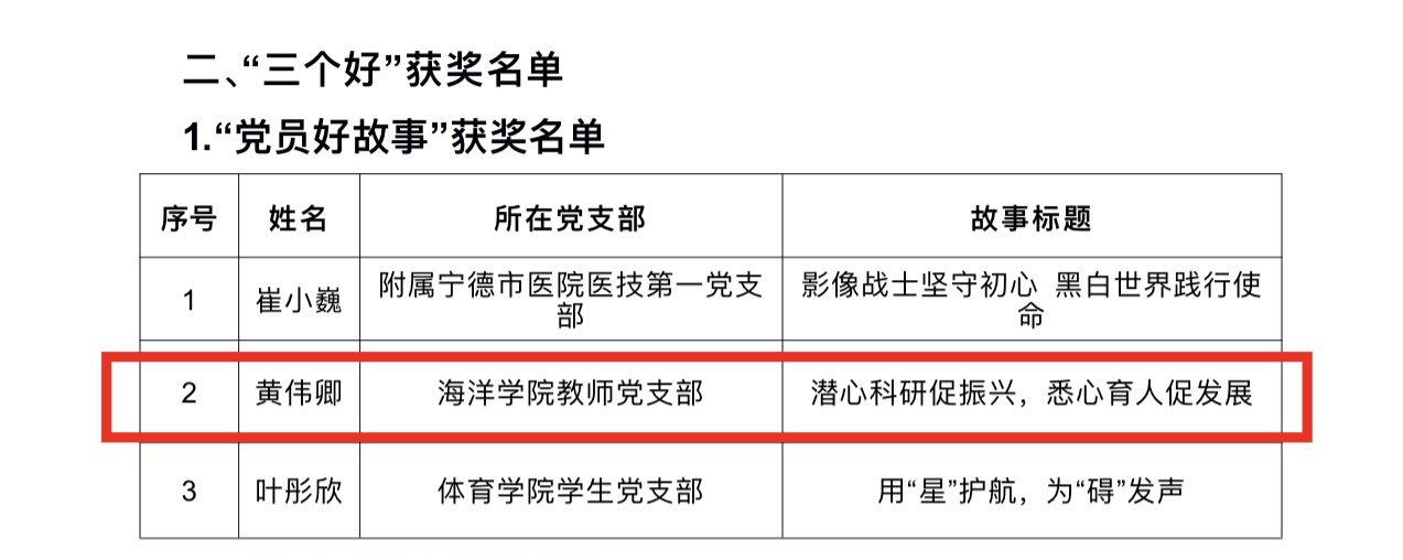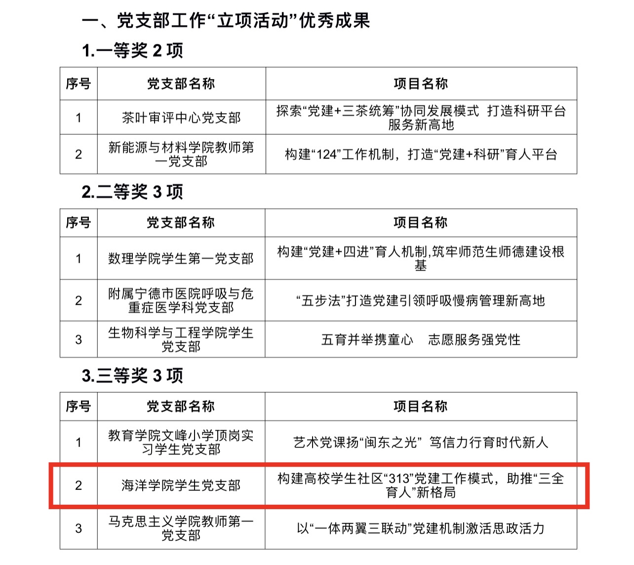 其中,Beat365官网学生党支部项目《构建高校学生社区“313”党建工作模式,助推“三全育人”新格局》获评党支部工作“立项活动”优秀成果三等奖;Beat365官网教师党支部黄伟卿老师的故事《潜心科研促振兴,悉心育人促发展》获评“党员好故事”。