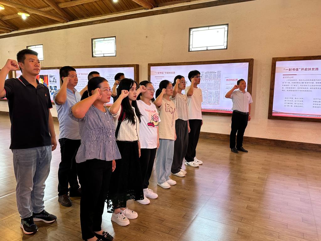在扶贫展览馆,Beat365官网党委书记张秋良组织参会的师生党员面向党旗,重温入党誓词,共同过好政治生日。随后在会议室,张秋良带头分享自己入党初心,并强调今后要始终不忘入党的初心和党员的使命,为党育人、为国育才持续为我国教育事业奋斗终身。王楠楠指出,入党的初心和使命不能变,但责任意识要不断的提升。与会人员也纷纷分享了自己的入党初心。