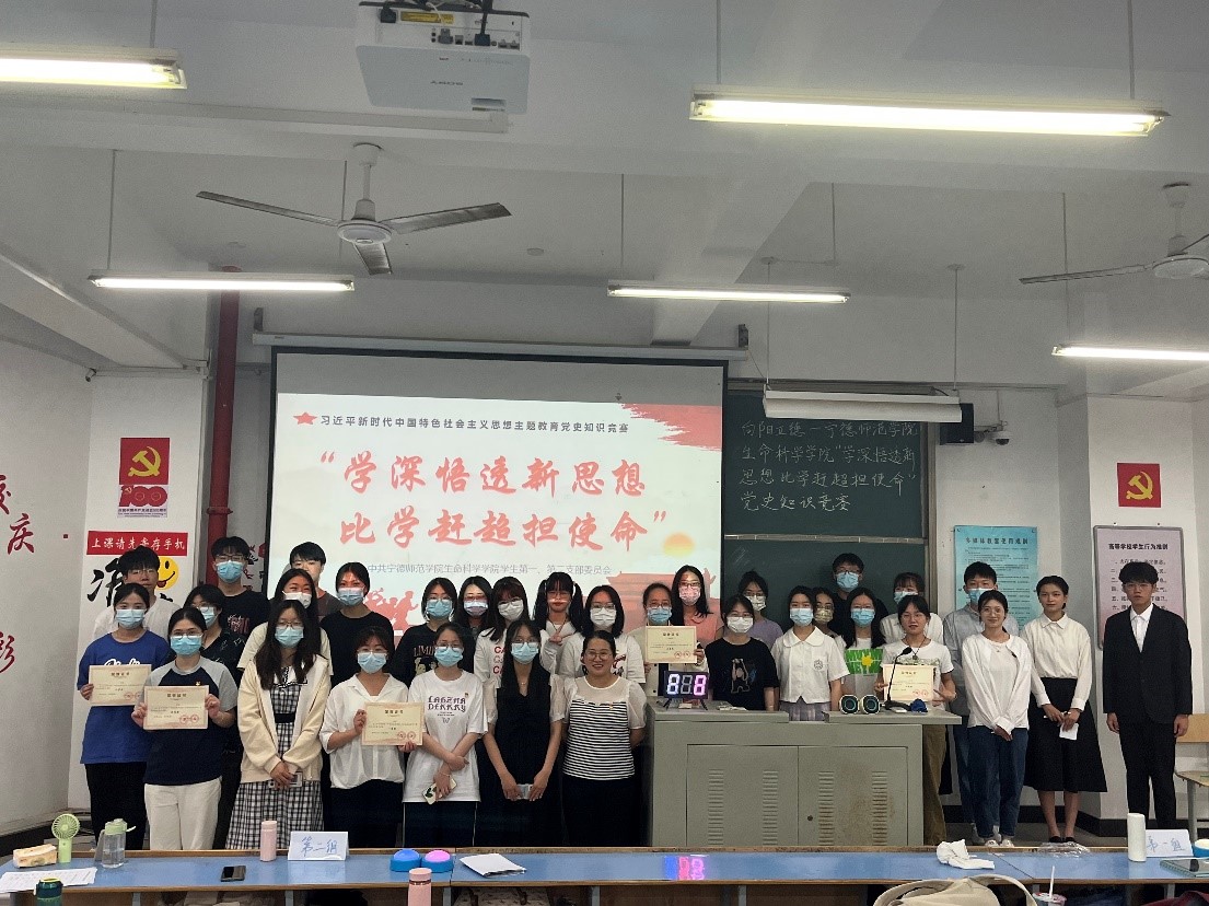 5月26日中午,宁德师范学院生命科学学院在求实楼CC201举办“学深悟透新思想 比学赶超担使命”党史知识竞赛暨主题党日活动,院学生第一党支部书记王珂、党员教师王永吉、林慧、林维杰出席活动,生命科学学院学生第一、第二党支部所有学生党员、发展对象参加活动。