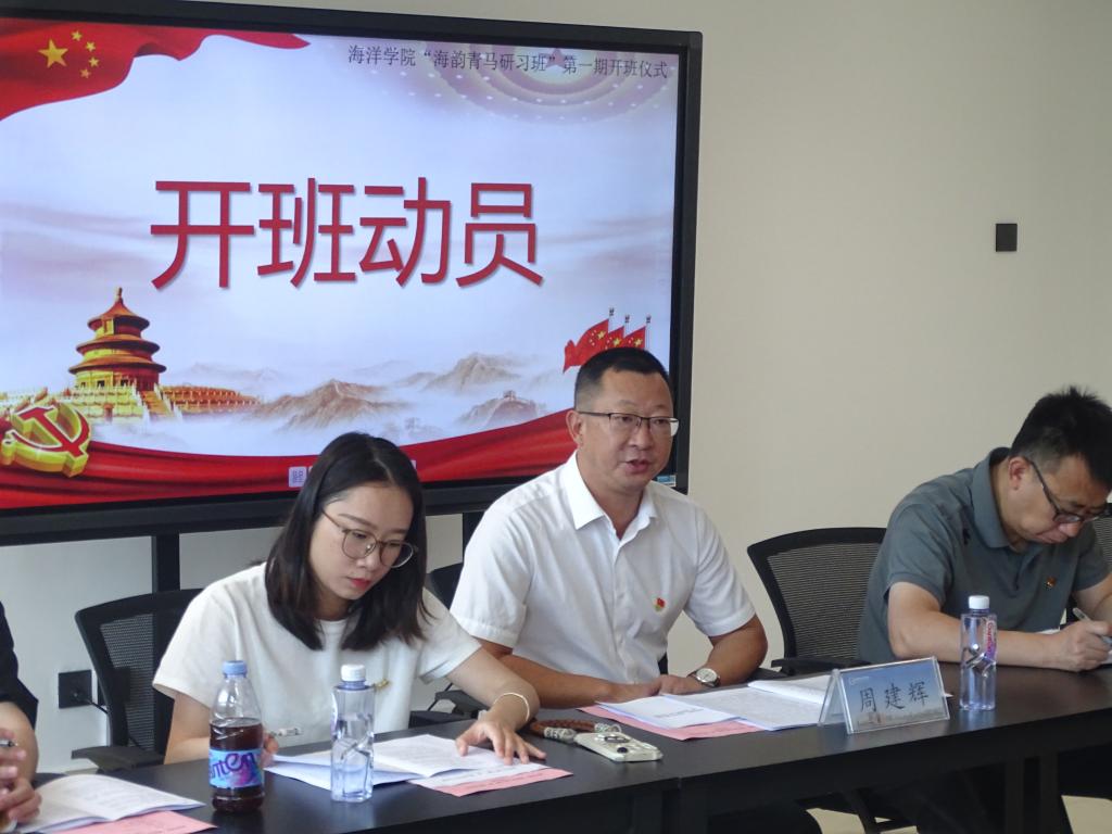 周建辉在开班仪式上作动员讲话,他指出,研习班是学院党委落实习近平新时代中国特色社会主义思想、培育青年入党积极分子的重要举措,旨在为海洋强国战略锻造“理论清醒、实践担当、红色传承”的先锋力量。他强调,学员要以系统理论学习筑牢信仰根基,从党的创新理论中感悟真理力量;以“微调研”“志愿服务”等实践淬炼厚植为民情怀,深入校园生活解决师生关切热点问题;以闽东红色资源传承锻造先锋品格,从日常学习生活中彰显青年担当。周建辉希望学员将个人理想融入“海洋强国”战略,拒绝“躺平”、挺膺担当,通过“红帆分享会”等载体引领身边同学,努力成长为“政治可靠、专业过硬、作风扎实”的新时代青年,为海洋事业和民族复兴贡献青春力量。