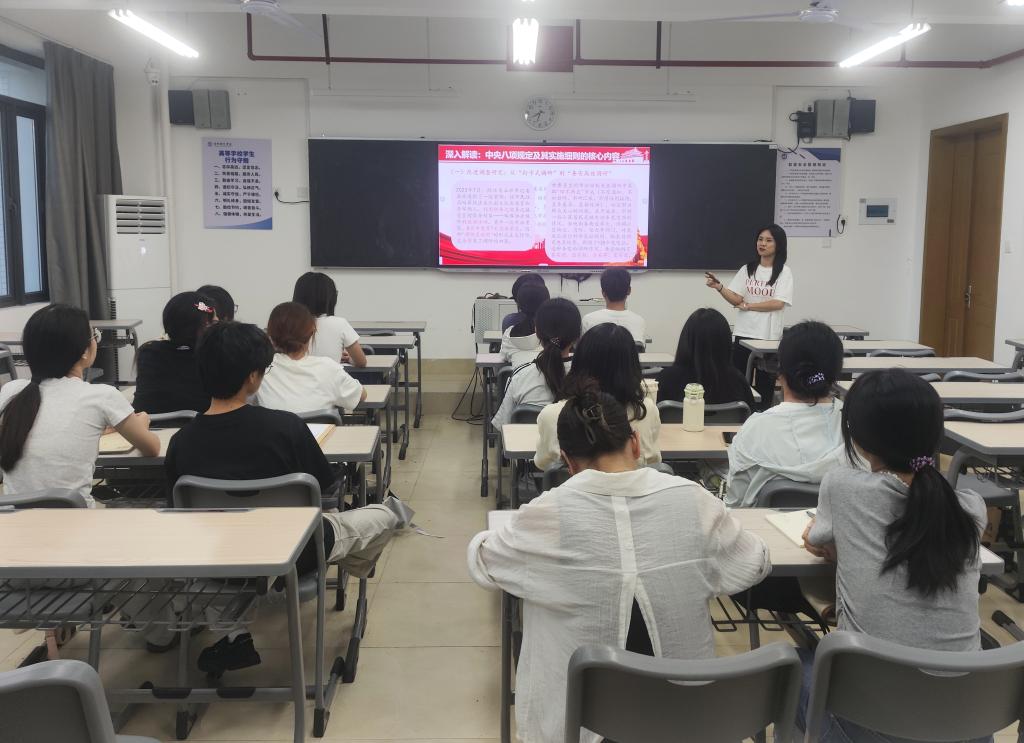 为深入学习贯彻中央八项规定精神,持续深化作风建设,Beat365官网学生党支部于6月26日在医教楼601开展“学习贯彻中央八项规定精神,争做新时代作风建设排头兵”主题党课。主讲人为学生党支部书记苏晗,支部全体党员共同参与。