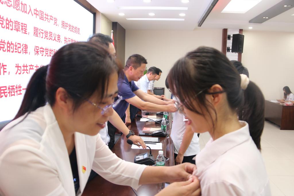 仪式在雄壮的《国际歌》中拉开帷幕,该院院长孙君顶宣读《中共永利集团官网委员会关于表彰2022年度优秀党务工作者、优秀共产党员的决定》,向受表彰的同志表示祝贺。随后,现场全体党员面向党旗,庄严宣誓。该院党委委员为新发展党员代表佩戴党员徽章并发放政治理论学习书籍《顶天立地讲信仰》。新发展党员包子旭代表全体预备党员对组织的培养表示了感谢,并表达了为党的事业努力奋斗的决心。
