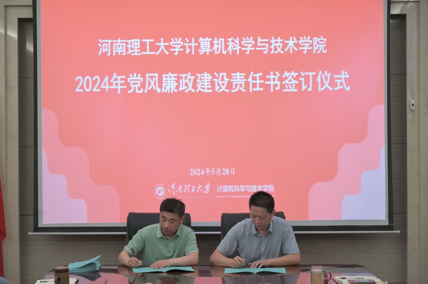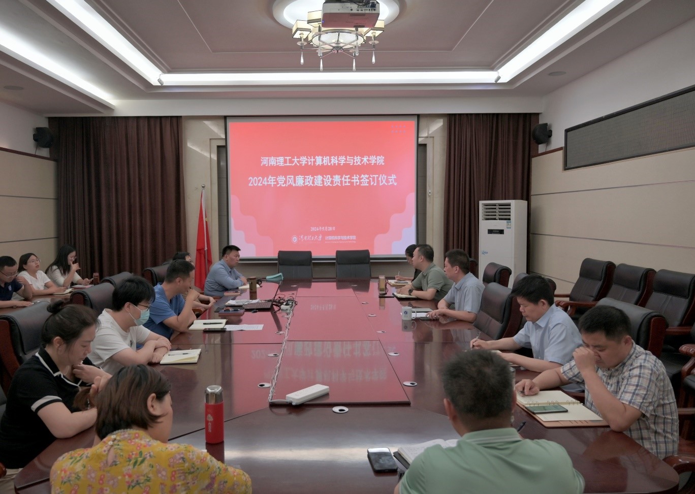 为深入学习贯彻习近平总书记关于党的自我革命的重要思想和全面从严治党重要论述,推动党纪学习教育走深走实,纵深推进全面从严治党,5月28日下午,学院在217会议室召开2024年党风廉政建设责任书签署仪式暨党员干部集体廉政谈话会,学院领导班子、系(室)负责人及支部书记参会,会议由党委副书记阎俊豪主持。