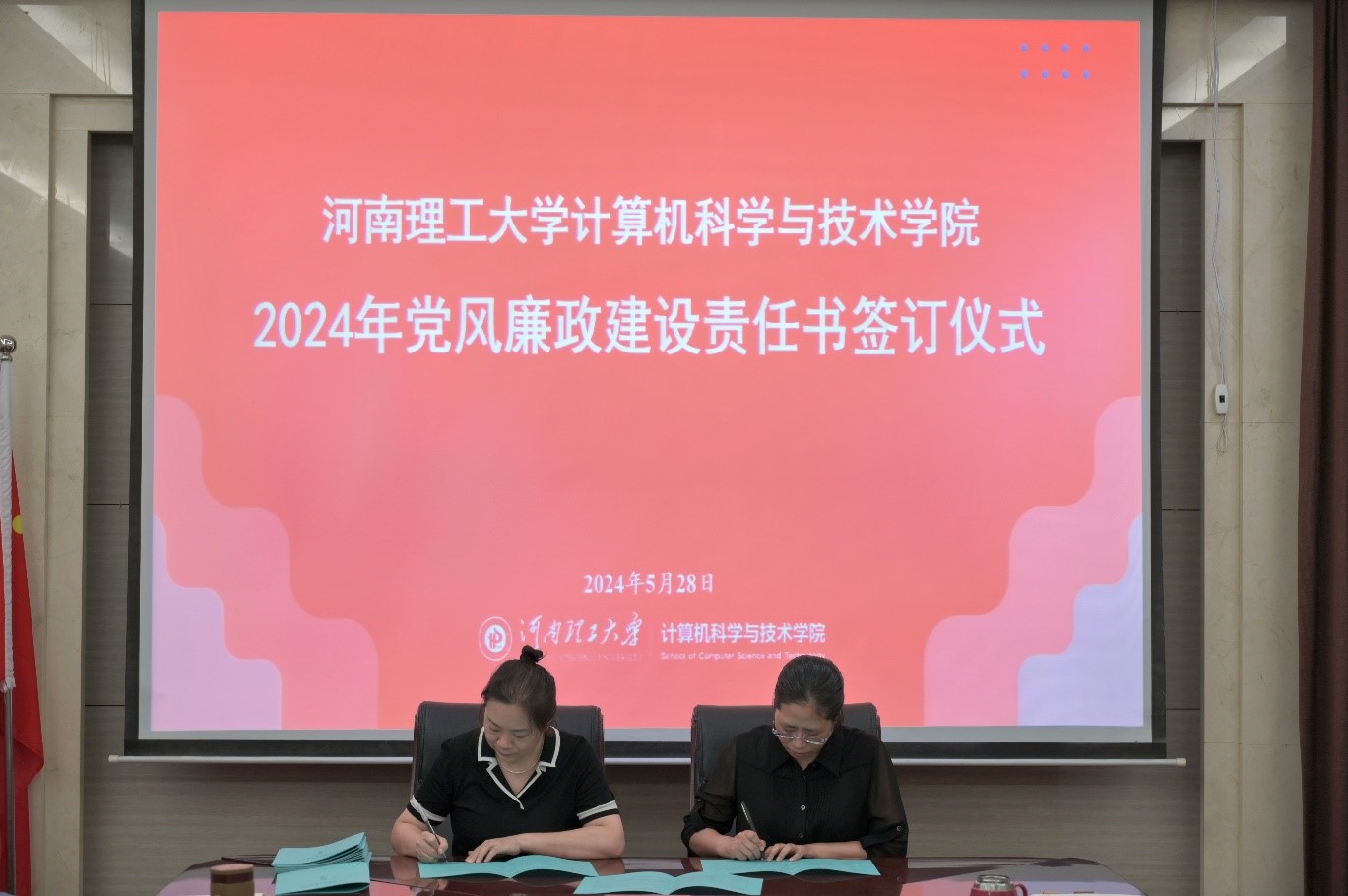 仪式上,学院党政主要负责人与学院分管领导之间,学院分管领导与科级干部、系(室)负责人、教工党支部书记之间,逐级签署了2024年度党风廉政建设责任书。该责任书从主要领导、推动落实、宣传教育、检查考核、表率示范等方面对各级干部的责任作了规定,要求责任人认真落实“一岗双责”。责任书的签订形成了以上率下、层层压实责任的党风廉政建设体系,进一步完善了责任主体明确、责任内容细化“齐抓共管”的工作格局,增强了全体科级以上干部的廉洁自律意识,强化筑牢拒腐防变的思想道德防线。