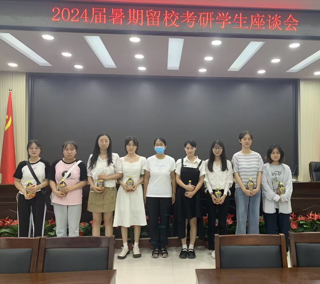 座谈会上,冯荣荣提醒同学们要利用好暑期黄金时间,按照自身考研计划认真复习,留校期间要提高安全意识,学习生活中遇到问题要及时与家长、老师和学院沟通。阎俊豪从坚持正确选择,不动摇考研决定;认真为其付出,用好假期宝贵时光;努力必有回报,多渠道实现升学愿望等三个方面,鼓励学生们坚定考研的信念,提醒学生劳逸结合、加强安全健康管理。交流环节,与会老师耐心听取学生们的意见建议,并对空调使用、餐厅开放和教学楼开放等问题进行沟通解答。会后,学院为参加座谈会的考研同学赠送发放了饮品,送去满满祝福。同学们纷纷表示感受到了学院的关怀,将以最好状态认真复习,争创佳绩。