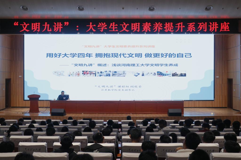 为提升学生文明素养,树立做文明学生成长目标,10月17日下午,永利集团官网在第二图书馆A报告厅举办“文明九讲”——大学生文明素养提升系列讲座首场讲座。永利集团官网党委副书记阎俊豪以《用好大学四年 拥抱现代文明 做更好的自己》为题,就如何做文明大学生及“文明九讲”主要内容进行宣讲。学院2023级全体本科生参加。