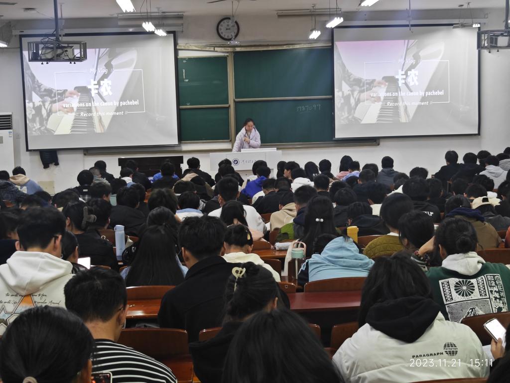 为了提升学生的审美感知力,艺术素养和人文素质,丰富大学生活,我院于11月21日在3号教学楼3106举办了“文明九讲”之“音乐与人生”专题系列讲座。本次讲座由专职辅导员赵娜主讲,2023级全体学生参加。